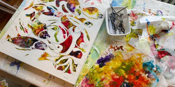 I began my journey exploring the translucency of water colours, I veered towards the intensity of acrylic colours and now try to combine them. Paint is like stained glass, the more the light gets through, the more secrets are exposed.